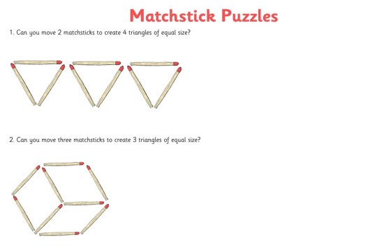 Why not try to solve one of these Matchstick puzzles? It might help to use matchsticks or to draw it … More